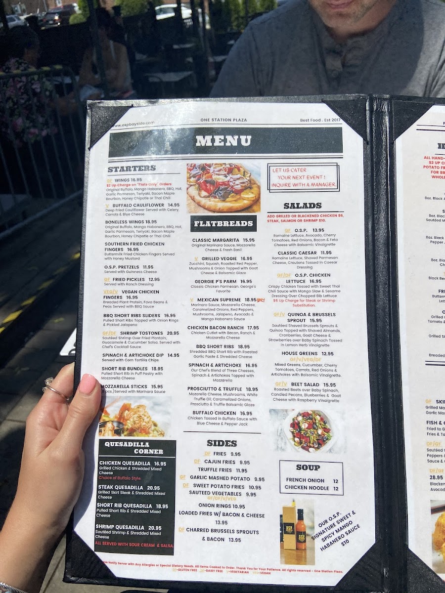 At One Station Plaza, the culinary journey reflects a vibrant blend of comfort and creativity. Nestled in Bayside, NY, this restaurant excels in crafting delightful flatbreads and mouthwatering burgers that cater to every palate. Signature dishes include the Classic Margarita flatbread and the O.S.P Burger, each complemented by a cozy atmosphere perfect for gathering with friends or family. Patrons rave about the exceptional service and warm hospitality, making even the toughest days brighter. With indoor and outdoor dining options and a dedication to quality, One Station Plaza stands out as a local gem for delicious food and memorable experiences.